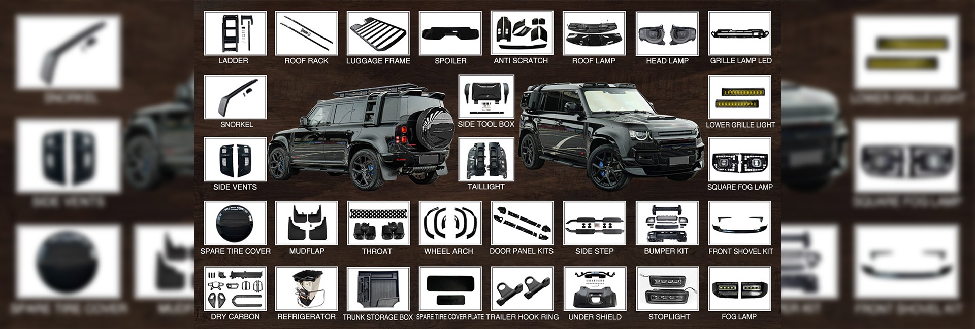 Prezzo di fabbrica lucido nero testurizzato Kit antigraffio per specchietto laterale auto copre la piastra di protezione del bagagliaio per Land Rover Defender 110